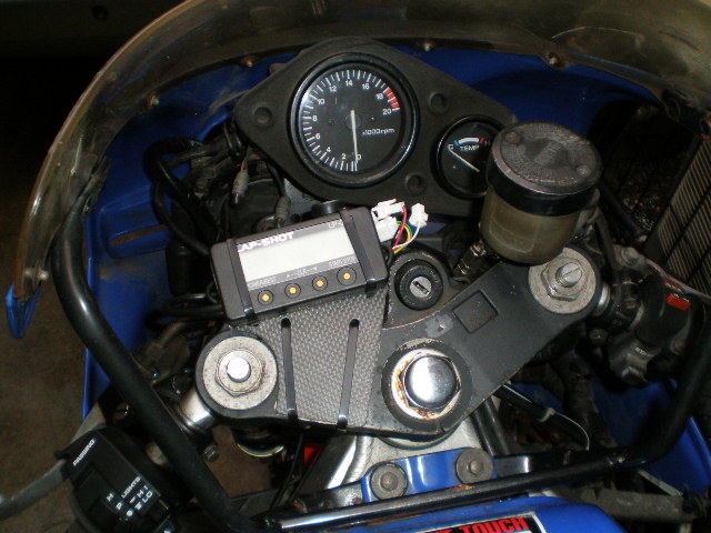 トップブリッジに取り付けてるのは、サーキット走行では重宝するLAPタイム自動計測機 ”LAP SHOT” です。