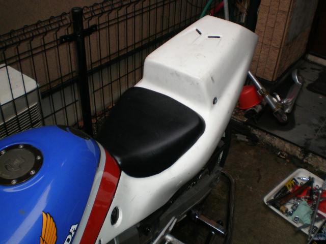シートはどこのブランドか解らないFRP製シングルシートで、ヤフオクで落としたのですがCBR250R&400R用ってなってた・・・。